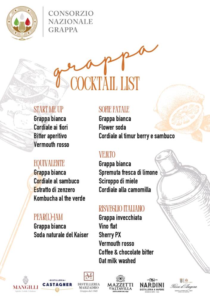 Cocktail  che trasmettono la versatilità della Grappa, e che saranno capaci di far scoprire, riscoprire ed  apprezzare al grande pubblico la nobile acquavite, prodotto d’eccellenza italiano.