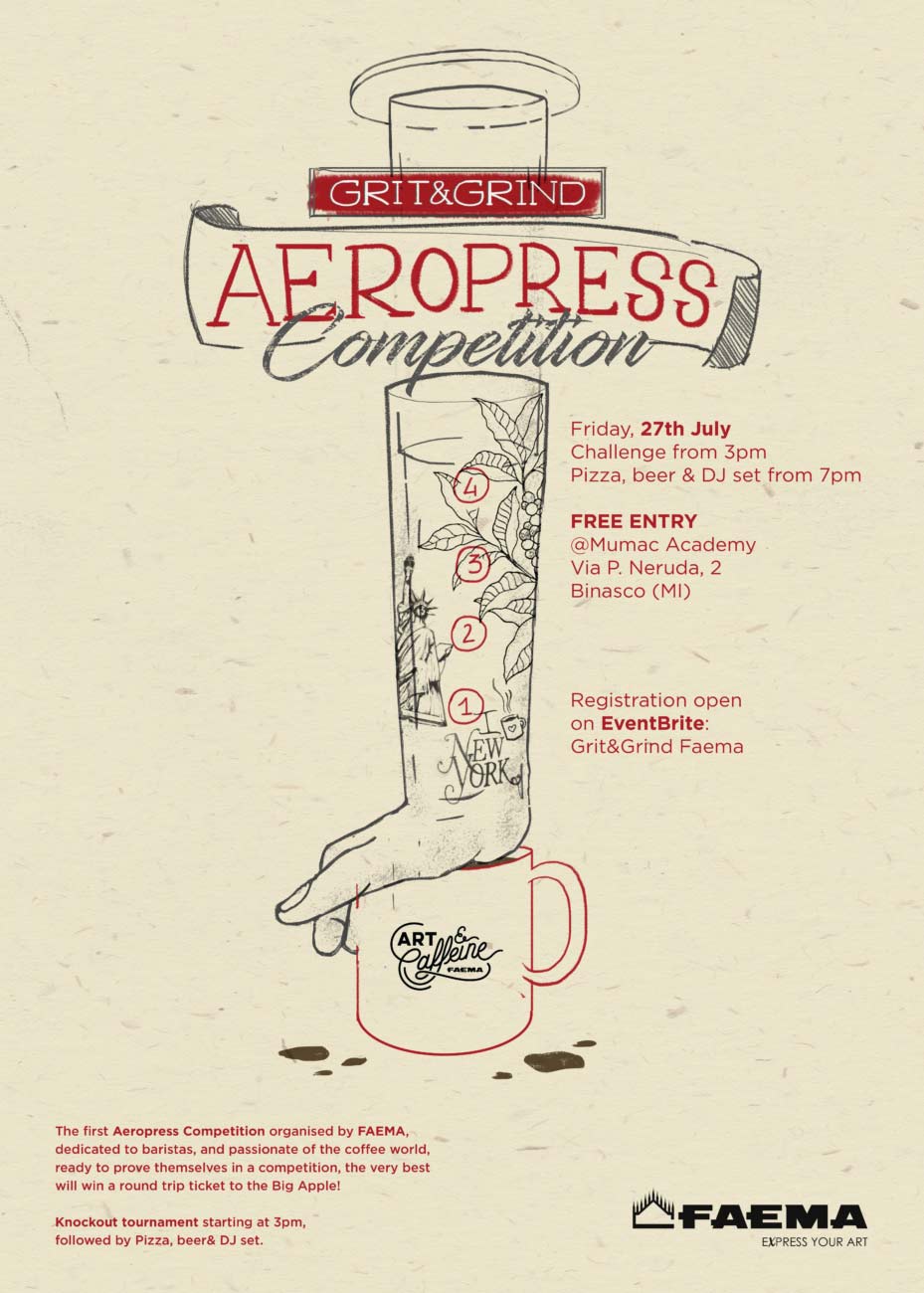 Si terrà venerdì 27 luglio al MUMAC – Museo della Macchina per Caffè di Gruppo Cimbali (Binasco), la prima edizione di “Grit & Grind”, Aeropress Competition ideata e organizzata da Faema e riservata a tutti gli appassionati di una delle tecniche alternative di estrazione più di tendenza.