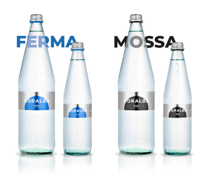 Coralba Exclusive giovane, nuova e alla moda nella bottiglia richiudibile da 250 ml, è ideale per le situazioni all’aperto o l’idratazione in movimento; da 750 ml da condividere con buon cibo e buona compagnia per esigenze outdoor.