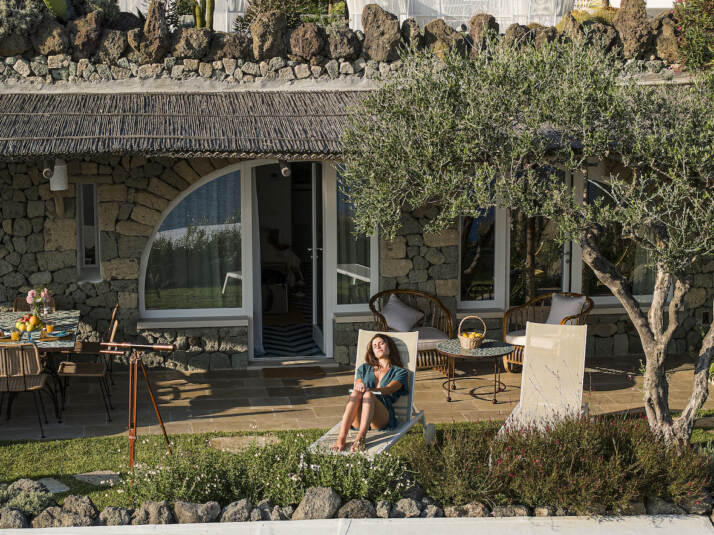 Il tufo bianco locale esalta i colori vivaci dei pavimenti in ceramica di Vietri, realizzati da abili artigiani, gli arredi in stile tipico mediterraneo sono arricchiti da un twist contemporaneo, con i tessuti in canapa e lino grezzo, dai toni naturali. Le terrazze private sono allestite per vivere ogni momento della giornata, il patio con grandi tavoli in legno naturale e ceramica dipinta a mano per le occasioni conviviali e la zona solarium con chaise loungues e doccia all’aperto, rendono l’outdoor il luogo perfetto per trascorrere le proprie giornate sull’isola. Per chi volesse regalarsi un tuffo o una giornata sportiva, Costa del Capitano racchiude anche la piscina di acqua sorgiva a 28 gradi circondata dal suo solarium con cabanas e chaise lounges e due campi da tennis.
