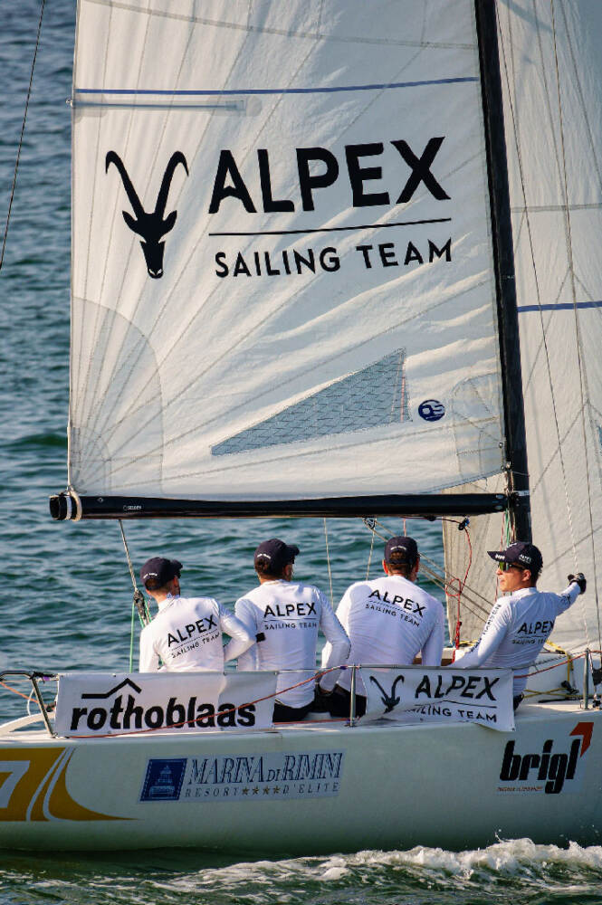 Tanto entusiasmo, quindi, a bordo e in banchina, allo spiegarsi della grande randa sulla quale fa bella mostra la testa di stambecco simbolo di ALPEX, brand sinonimo del territorio di provenienza dei ragazzi e riconosciuto per il suo carattere forte e al contempo elegante, che ama le sfide e promuove la convivialità con la sua Acqua Tonica, gli aperitivi analcolici ready to drink e altre sodate di prima qualità.