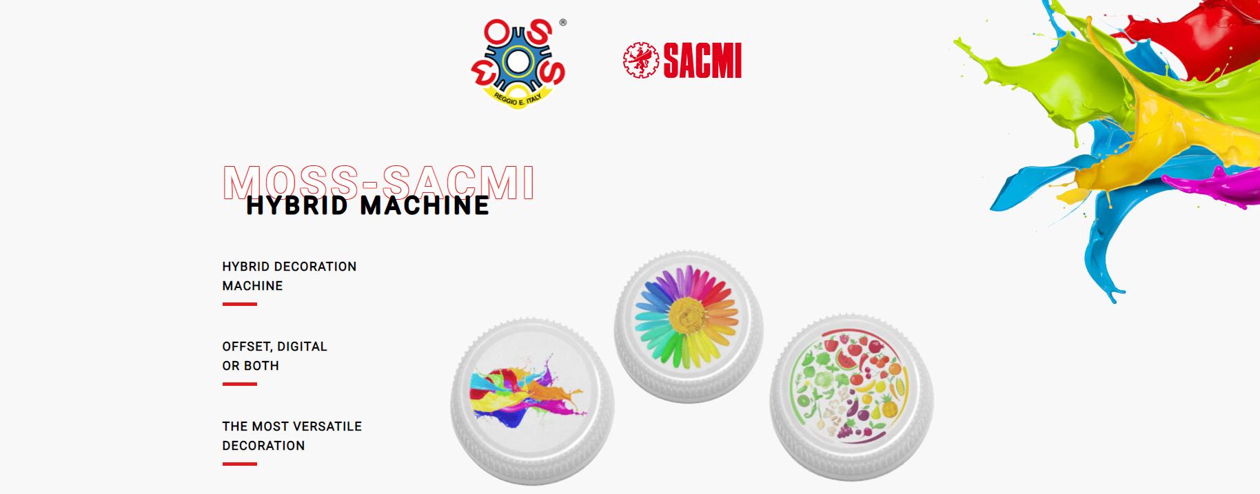 La Hybrid Decoration Machine di SACMI-MOSS è disponibile per capsule sino a 38 mm di diametro. Consumi limitati di energia ed aria compressa, ingombri ridotti, caratterizzano la soluzione, che può essere facilmente installata su linee esistenti.