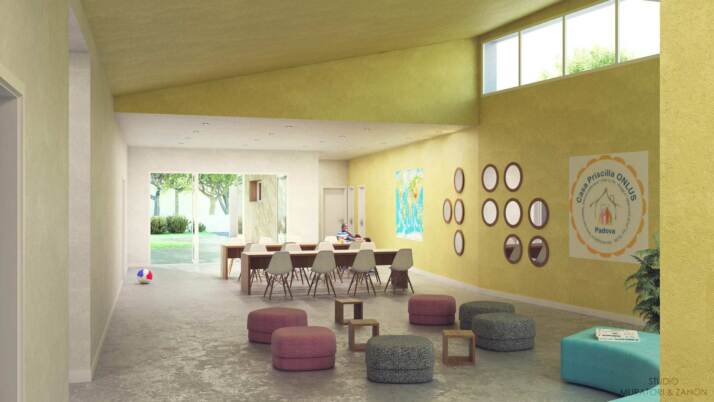 Da una vecchia scuola elementare dismessa, ora completamente abbattuta, è progressivamente in fase di realizzazione – grazie all’impresa di costruzioni cui fa capo l’arch. Luigi Ometto – una nuova struttura ad un piano unico, totalmente in legno, immersa nel verde e completamente ecosostenibile, che associa importanti soluzioni di risparmio energetico ed idrico e che consentirà a Casa Priscilla di quadruplicare il servizio di accoglienza e supporto a mamme e minori in difficoltà.