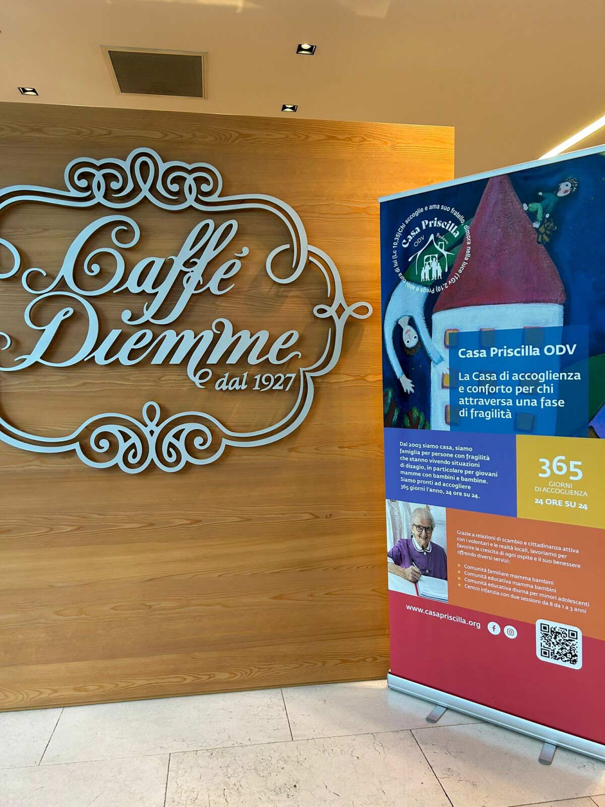 Caffè Diemme si affianca a Casa Priscilla ODV, realtà padovana, situata in Via Jacopo Crescini, 24 ter, fondata da sorella Maria Parolin (Suor Miriam) che dà supporto a minori, mamme, donne maltrattate e nuclei familiari in difficoltà, per costruire una nuova casa di accoglienza in via Vlacovich, dove è stata acquistata un’area dal Comune di Padova.