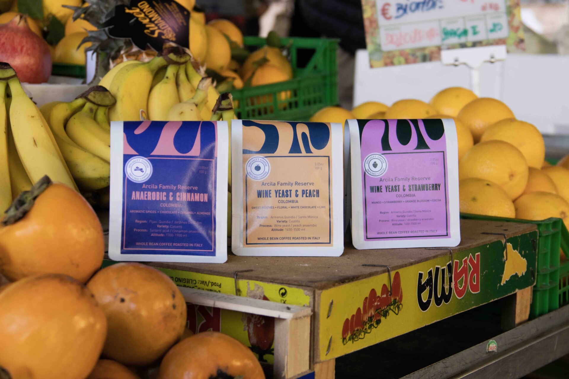 Sempre dall’Armenia, dallo stesso produttore, proviene il caffè lavorato con “Fragola & lievito di vino”, caratterizzato da una percezione sensoriale che richiama il mango, la fragola, i fiori d’arancio ed il cacao. Sviluppato dalla Federación Nacional de Cafeteros anche questo caffè è stato sottoposto ad un periodo di fermentazione anaerobica di 72 ore con caffè ancora in ciliegia e polpa di fragola più l’aggiunta di lievito di vino.