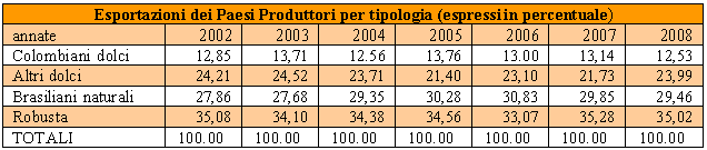 Poiché numerosi paesi produttori hanno produzioni di due o più tipologie di caffè non si è in grado di effettuare una precisa attribuzione. Inoltre a rendere più aleatoria la ripartizione tra le quattro tipologie di caffè contribuisce il fatto che per le partite provenienti da paesi comunitari non è previsto l’obbligo di indicare l’origine del prodotto; pertanto tali volumi non vengono presi in considerazione nel procedere alla ripartizione delle importazioni per tipologie di caffè: