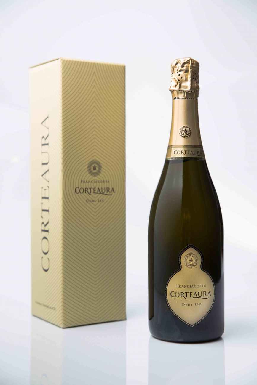 Il Demi Sec di Corteaura ha un colore giallo paglierino e perlage fine e persistente. Il profumo è di pasticceria e il gusto è leggermente fruttato e vanigliato.