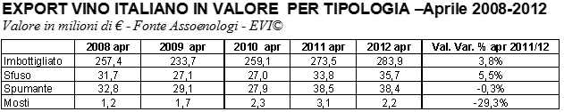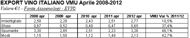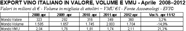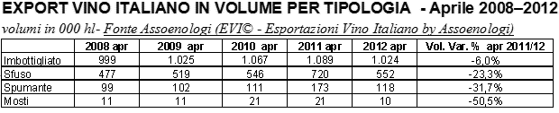 Abstrat dallo studio Assoenologi sulle esportazioni di aprile 2012