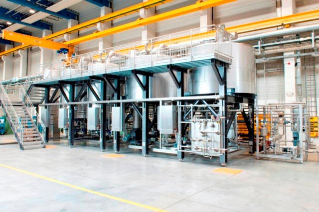 Questi tubi con alettatura a eliche incrociate vengono generalmente utilizzati nell’area di preriscaldamento e raffreddamento. Nella zona di riscaldamento, dove spesso la viscosità diminuisce a causa delle temperature più elevate e diventa quindi acquosa, vengono invece impiegati tubi lisci. Krones utilizza questa combinazione da subito sia per i nuovi scambiatori di calore a tubi con rendimenti fino a dieci metri cubi l’ora, sia per i rendimenti medio-alti, che spaziano dai 15 ai 30 e ai 60 metri cubi l’ora. Questa combinazione di tubi lisci e tubi con alettatura a eliche incrociate offre anche la massima flessibilità in tema di viscosità e consente di lavorare i prodotti più diversi, da quelli con la viscosità dell’acqua a quelli a alta viscosità. La combinazione di questi due tipi di tubi, inoltre, offre grande flessibilità anche per quanto riguarda il rendimento: il flusso volumetrico dell’impianto può essere regolato dal 100 percento al 30 percento, in base al prodotto. In questo modo è possibile riempire recipienti grandi e piccoli sulla riempitrice, senza uscite intermedie.