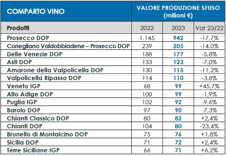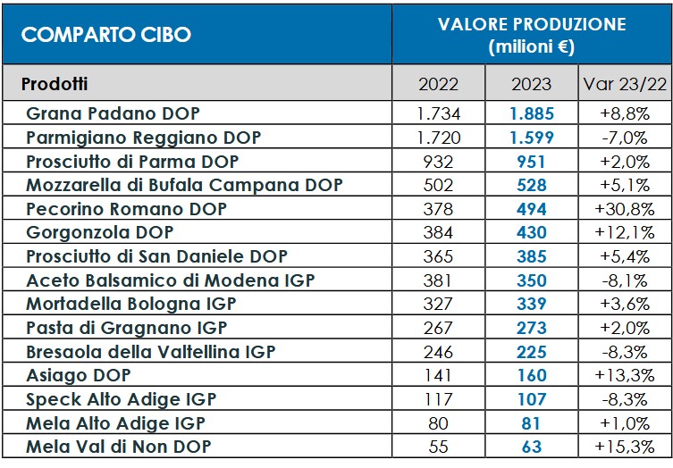 L’export raggiunge 6,89 miliardi € (-0,6% su base annua e +66% sul 2013), una sostanziale tenuta dopo il balzo del +10% registrato nel 2022. Numeri di una filiera composta da 107.175 operatori, 333mila occupati, 135 Consorzi di tutela autorizzati dal Masaf e 12 Organismi di controllo.