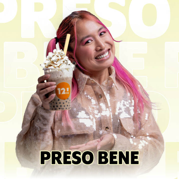 Ogni 12 del mese, tutti gli store della catena propongono una nuova esclusiva bevanda battezzata con il nome di un personaggio particolare. La campagna debutta il 12 novembre con il primo drink “Preso Bene”, un drink intenso, dagli accostamenti particolari: latte macchiato con poppin’ coffee, panna montata, topping al caramello e pop corn.