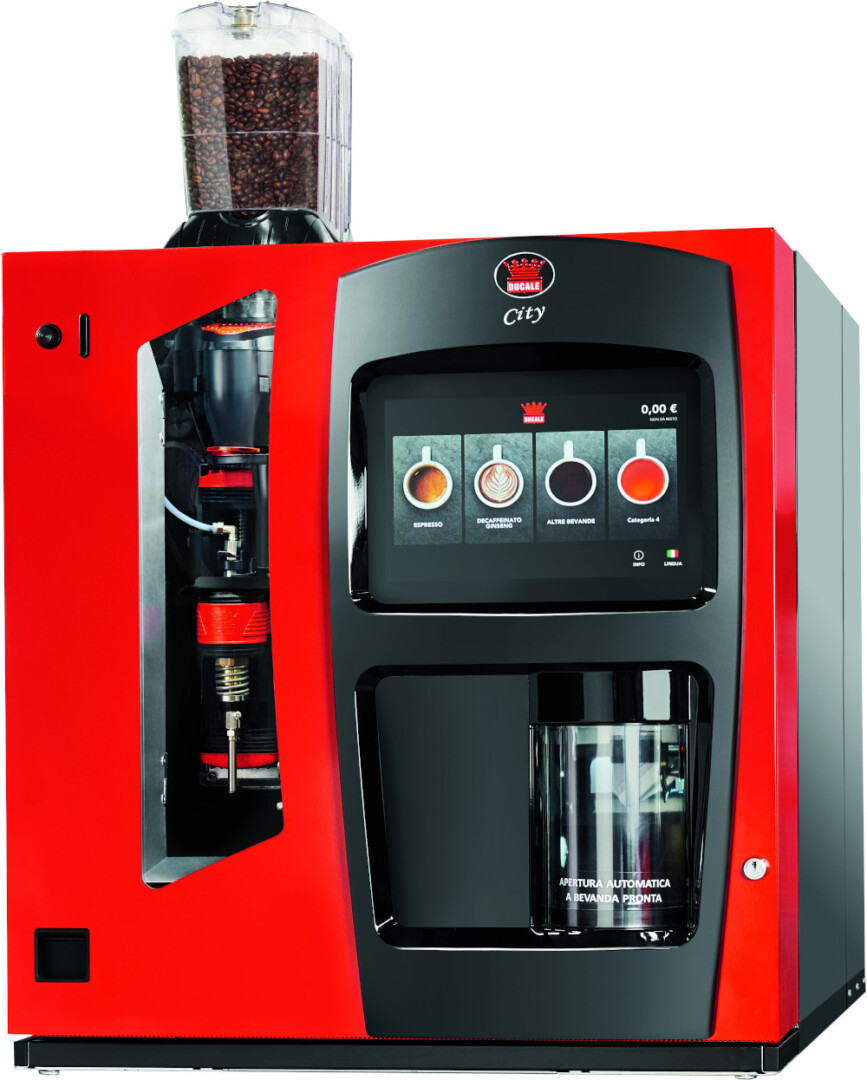 Ducale City 300 si fa apprezzare per l’interfaccia utente, semplice e intuitiva, con il nuovo touch screen da 12” che permette in pochi secondi di selezionare la bevanda desiderata. L’ampia possibilità di personalizzazione tramite i topping consente di creare bevande sfiziose, diversificando ancor di più il menu di proposte. Il distributore ospita sei contenitori per prodotti solubili, due contenitori per prodotti topping e i bicchieri in due differenti formati, tra cui il bicchierino da espresso, per un totale complessivo di 300.