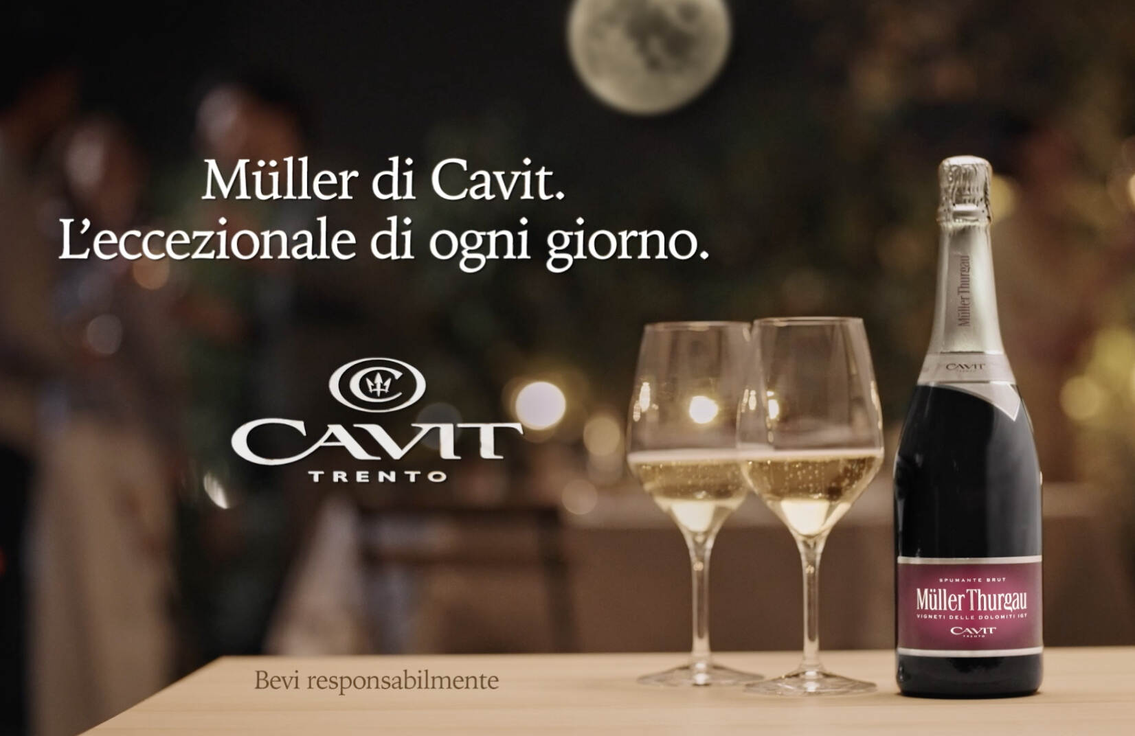 Il claim dello spot infatti è “L’eccezionale di ogni giorno”: una frase che esprime lo spirito di un’icona come lo spumante Müller di Cavit, un prodotto ideale per stare in compagnia, per cene sotto la luna ed aperitivi in terrazza.