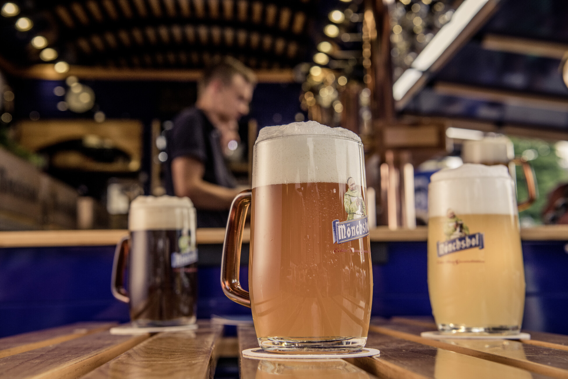 L’occasione perfetta per una degustazione direttamente sul posto è rappresentata dalla mescita itinerante BrauSchänke che propone la gamma delle birre Mönchshof. “Alla BrauSchänke spesso ci capita di vedere facce sorprese perché molti visitatori non sanno nemmeno da quante diverse specialità birraie è composto l’assortimento Mönchshof. E tutte sono spillate direttamente dal fusto”, racconta Peter Georgius da anni responsabile della BrauSchänke della Franconia con orgoglio.