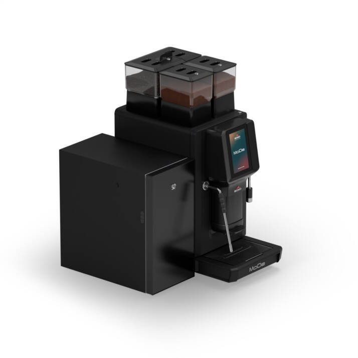 Il frigorifero FUM, posizionato sotto l’unità principale della macchina da caffè, e il frigorifero MK6 sono ora entrambi disponibili per MoDe nella configurazione Pro Milk. Inoltre, il frigorifero MK6, dotato di un nuovo sensore di livello del latte, può essere installato sia sul lato sinistro che su quello destro della macchina.