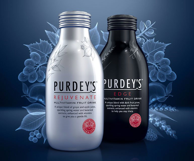 È il caso di Purdey’s, una bibita funzionale che già dal packaging di vetro da 33 cl denota la propria collocazione in fascia alta. Si tratta di due bevande rivitalizzanti chiamate Rejuvenate e Edge, a base di succo di frutta, acqua frizzante, estratti botanici e vitamine. La particolarità di queste bevande è che le formule non contengono caffeina o taurina.