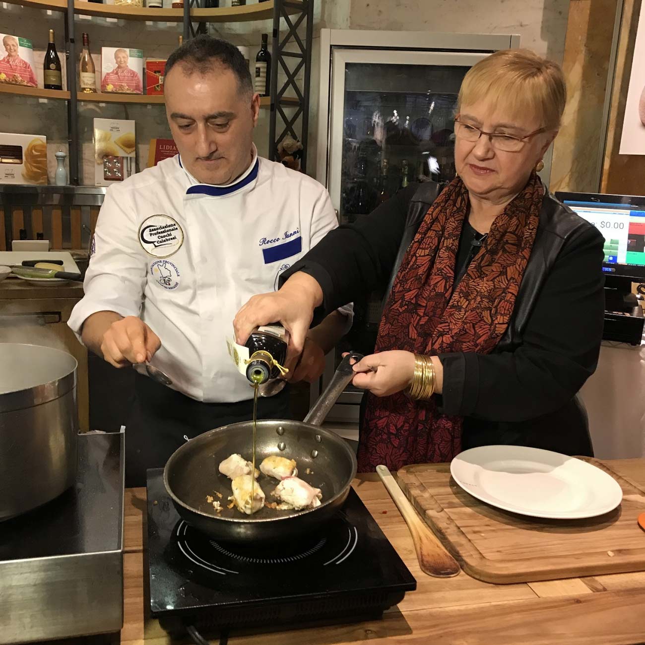 A fare da madrina all’evento di inaugurazione della partnership è stata Lidia Bastianich, ambasciatrice dell’enogastronomia calabrese nel mondo, che ha raccontato quanto ha scoperto nel corso dei suoi recenti viaggi in Calabria alla ricerca delle migliori produzioni agroalimentari del territorio e ha descritto al pubblico presente i piatti realizzati dallo chef calabrese Rocco Iannì, che si è cimentato nella preparazione di due ricette con l’utilizzo di alcuni rinomati prodotti tipici: filei con ‘nduja e involtini di pesce spada con granella di torrone di Bagnara IGP ed emulsione di olio extra vergine di oliva e bergamotto di Reggio Calabria DOP, un agrume unico al mondo che cresce soltanto in una ristretta zona della costa ionica di Reggio Calabria.