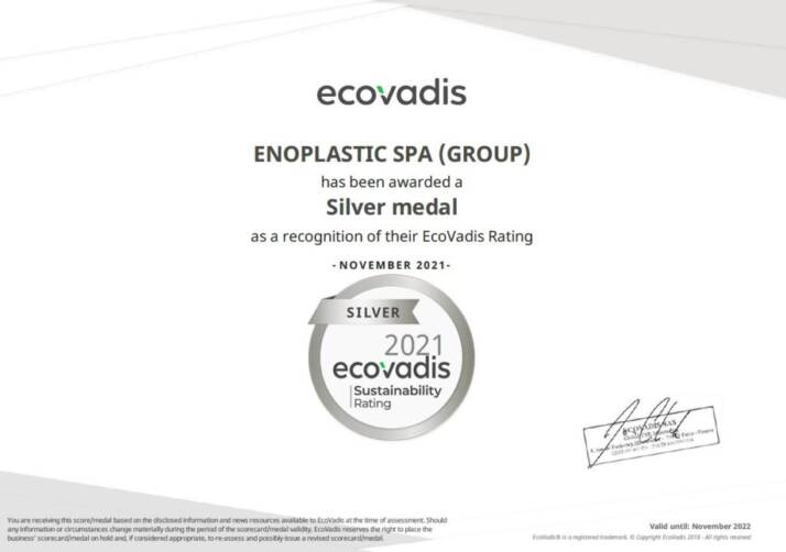 La sostenibilità è sempre più importante per le aziende, per questo alla Enoflex Spa, meglio conosciuta come Enoplastic, c’è grande soddisfazione per aver ottenuto la medaglia d’argento da EcoVadis, provider internazionale leader nella valutazione delle pratiche aziendali in materia. Il risultato conseguito dimostra un impegno reale e costante dell’azienda, dal 1957 leader nella produzione di capsule e chiusure di garanzia per i più noti marchi nel mondo del vino, spumante, liquori, olio e aceto, nel mettere in atto una serie di politiche responsabili in materia di ambiente, etica, lavoro e diritti umani e approvvigionamenti sostenibili.
