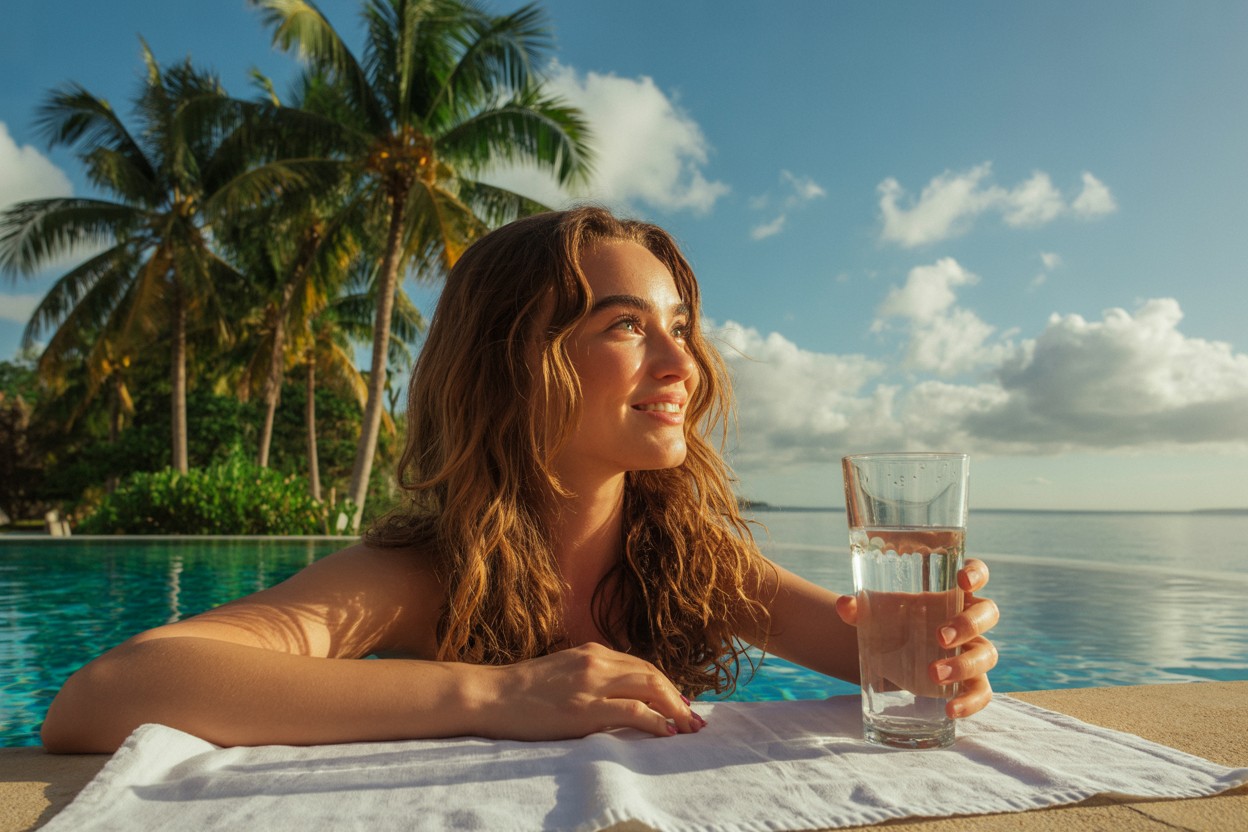 Durante l’estate, la perdita di liquidi aumenta significativamente a causa della sudorazione e della maggiore esposizione solare. Bere almeno 1,5 litri di acqua al giorno è il primo gesto per mantenere la pelle funzionalmente sana, oltre che visibilmente più compatta e luminosa.