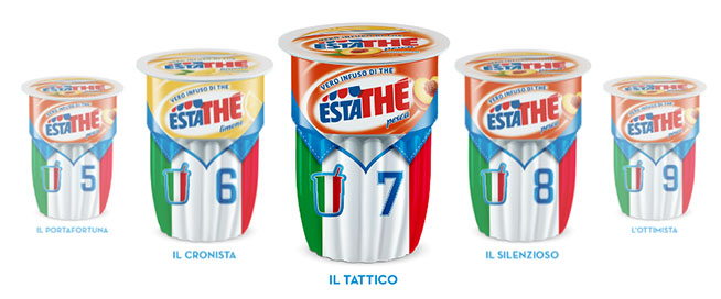 A partire dal 23 maggio infatti i classici bicchierini di Estathè si rinnovano con una grafica tricolore che in modo divertente ripropone al centro i numeri delle maglie dei giocatori ed in alto i nomi scelti da Estathé Thé best Supporter che rimandando agli stereotipi di tifosi italiani più comuni: l’ultras, lo scaramantico, il critico, il gufo, il portafortuna, il cronista, il tattico, il silenzioso, l’ottimista, l’ansioso, l’improvvisato e per finire il CT. Una rosa ti tifosi tutta da collezionare!