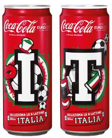 Coca-Cola tifa Italia in occasione degli europei di calcio UEFA EURO 2012™ con una serie di lattine da collezione in edizione speciale. Saranno, infatti, disponibili sul mercato (in tutti gli ipermercati, supermercati, superette e in oltre 163.000 fra bar e locali di ristorazione), fino alla fine di giugno, 6.000.000 di lattine Coca-Cola con grafica dedicata, nei differenti soggetti che compongono insieme la scritta: ITALIA. «Coca-Cola è da sempre tra i partner principali dell’universo calcio e supporta la passione dei tifosi di tutto il mondo per questo sport e lo fa trasmettendo loro la propria missione: continuare a celebrare il ruolo iconico della marca ed invitare ciascuno a scegliere sempre il lato positivo in ogni cosa. In particolare, nel corso di questa edizione degli europei, Coca-Cola invita gli italiani a scatenare la pazzia colorata del tifo per l’Italia» spiega Fabrizio Nucifora, Direttore Marketing Coca-Cola Italia.
