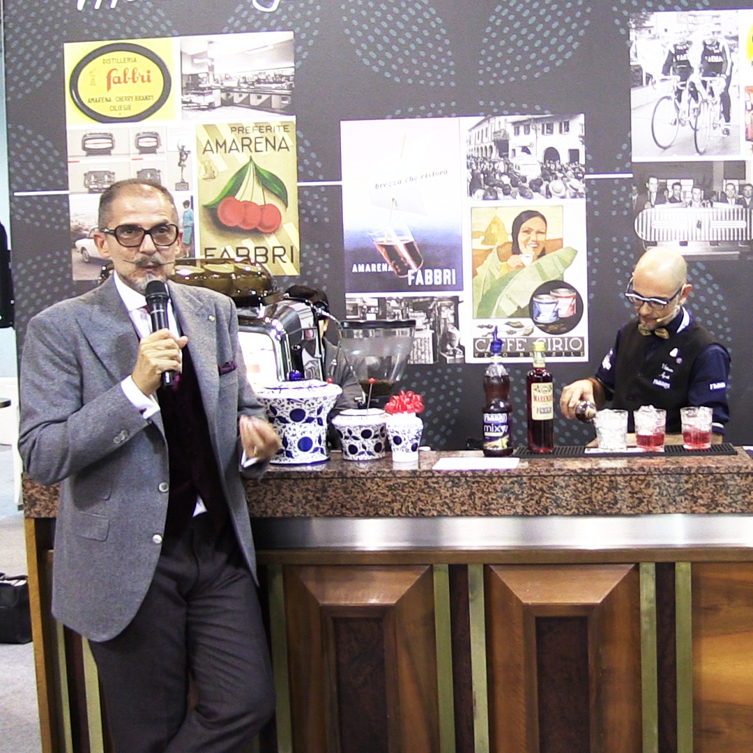 Alla manifestazione Host di Milano abbiamo incontrato il dottor. Nicola Fabbri, AD di Fabbri 1905 nella zona dedicata a Café Chronology dopo un intervento sul caffè nei miracles years (gli anni del boom economico del dopoguerra). Per loccasione il dottor Fabbri ha annunciato la riapertura della storica Distilleria Fabbri di Bologna per il ritorno alla produzione di Marendry, bitter allamarena. Altra novità di rilievo presentata ad Host è lo sciroppo Gum Nero di gomma arabica al carbonio vegetale, unico al mondo, che trasforma in nero notte qualunque tipo di cocktail senza alterarne il gusto.