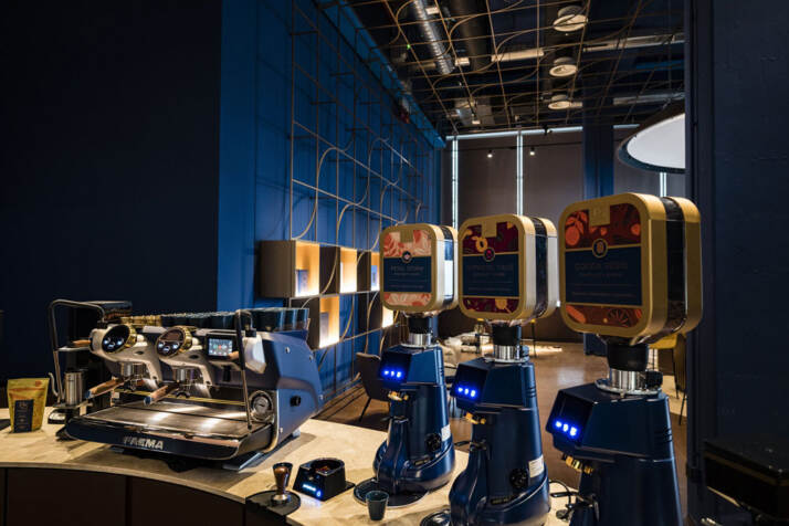 Le linee dei gruppi indipendenti, cuore dell’iconico modello Faema e punto in cui la creatività del barista incontra la meccanica della macchina, si fondono armonicamente con il concept design del nuovo spazio 1895 dedicato al mondo degli specialty Coffee.