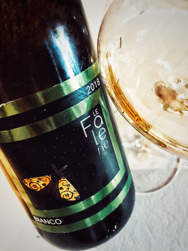 Dei tre vini proposti, un bianco, un rosso e un rosato, a convincere moltissimo è proprio il primo, il Toscana I.G.T 2018. Dopo un anno di affinamento tra barrique (per il 10%) e vetro, il vino a base di Vermentino e Ansonica, si presenta con un’intensificazione crescente, il corpo si sviluppa e proietta in un piano colorato puntellato di velature floreali contornate da mandorle salate. Una luce calda che spinge a pensare oltre al momento, diurno o notturno che sia. Le note balsamiche smorzano l’abbraccio al palato che risulta compatto e fresco, sempre in linea con i suoi profumi. Un gusto appena all’inizio della sua trasformazione da ricordare come l’arrivo di una falena sul palmo della mano. Cosa succede? C’è un inatteso sorriso, avvolgente e conciliante.