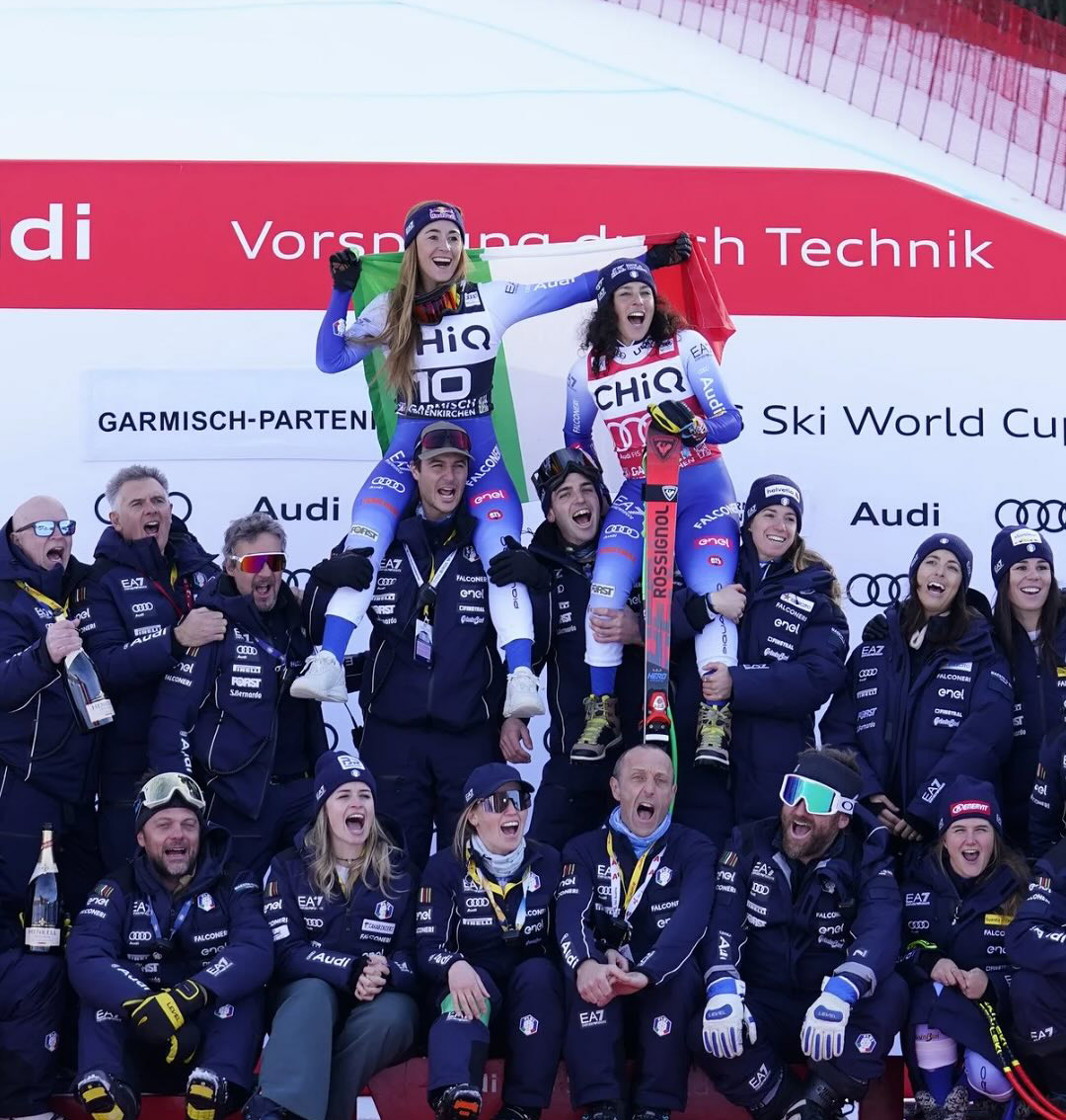 Giornata storica per lo sci italiano, con il successo di un solo centesimo di Federica Brignone, davanti alla compagna di squadra Sofia Goggia, a Garmisch. Sulla pista Kandahar arriva un capolavoro per lo sci azzurro, con la Brignone che segna il crono di 1’35″83, la più veloce di un centesimo meglio di Sofia Goggia, una differenza di 29 centimetri, davvero pazzesco.