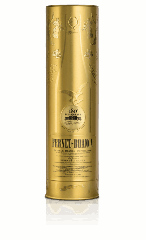- Latta 180° + Bottiglia Standard 70cl: Un’elegante confezione in latta da collezione racchiude la bottiglia Standard 70cl di Fernet-Branca, custodendola come un tesoro prezioso. Le linee pulite e l’effetto metallico si fondono in un design contemporaneo che celebra l’eredità visiva del brand, rendendo questa edizione un oggetto da conservare e mostrare. Un’allure sofisticata, ideale per sorprendere chi apprezza il gusto autentico e la cura del design. Un regalo dal fascino senza tempo, capace di unire tradizione e contemporaneità, semplicità e stile, pensato per chi ama circondarsi di pezzi unici che raccontano la storia.