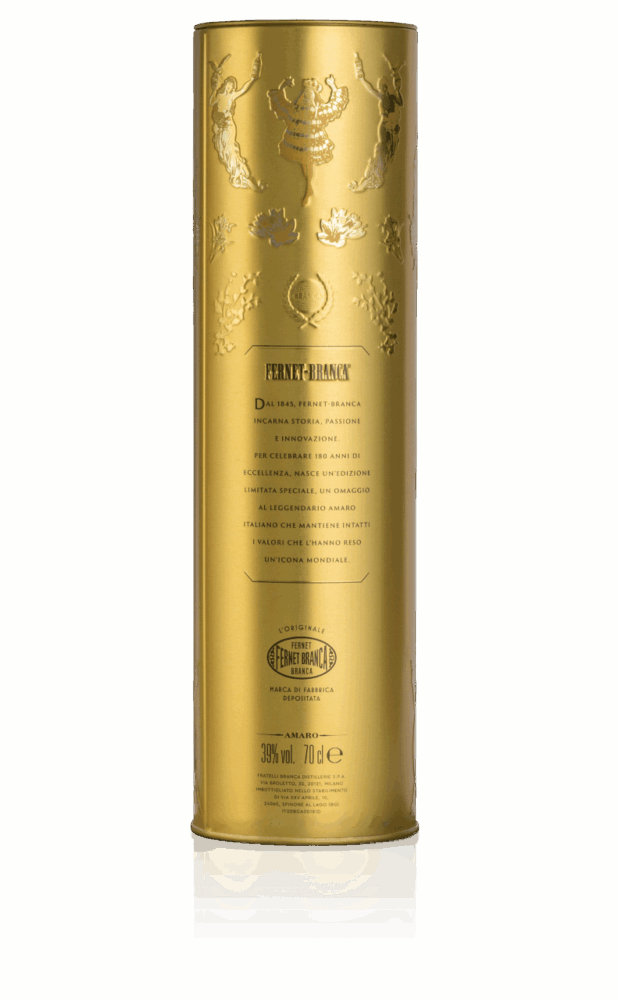 - Bottiglia Sleeve 70 cl: La bottiglia Gold Limited Edition si distingue per la sua sleeve dorata e un design contemporaneo che esalta l’eleganza e la forza iconica di Fernet-Branca, trasformando la bottiglia in un autentico oggetto da collezione. Un connubio di eleganza e modernità pensato per sorprendere chi ama i dettagli unici e la bellezza di un dono curato in ogni particolare. Perfetta per celebrare momenti speciali o per impreziosire la propria collezione con un tocco di stile.