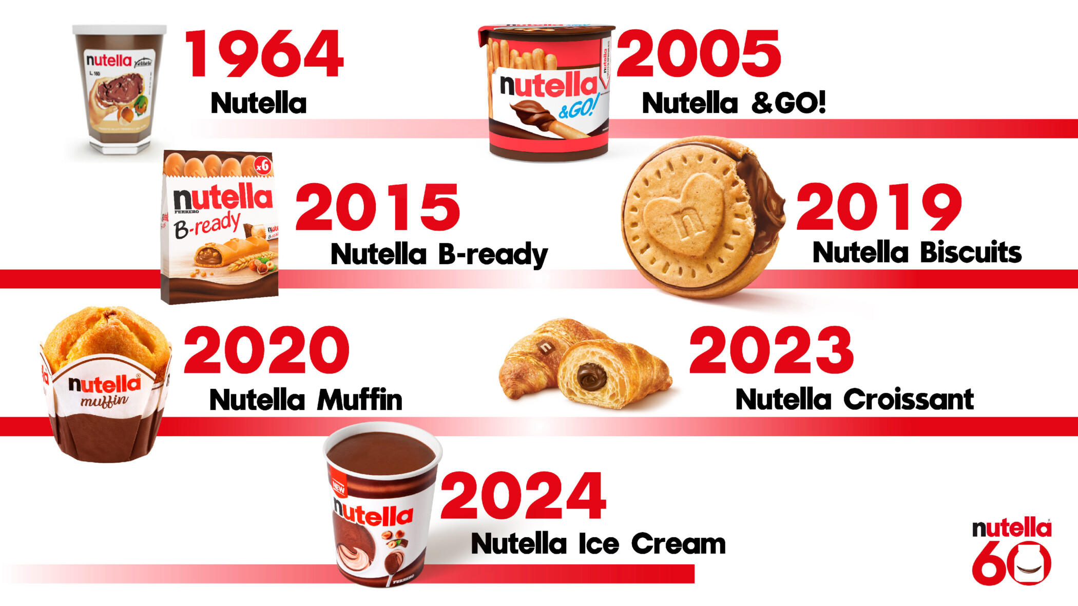 Nell’anno delle celebrazioni per il 60° compleanno di Nutella, grazie allo spirito di innovazione e di imprenditorialità che da sempre caratterizza Ferrero, Nutella avrà la possibilità di scrivere una nuova pagina della propria storia, e continuerà a sorprendere il pubblico anche nei prossimi mesi.