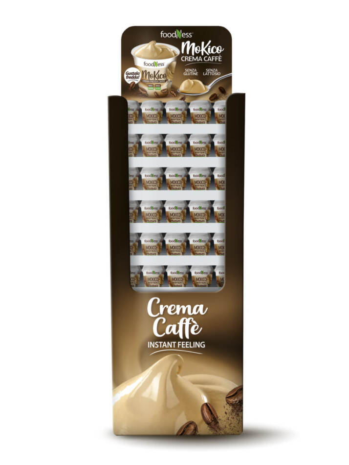Ma il protagonista dello stand sarà Mokico, l’ultimo nato in casa Foodness che porta in sé una grande innovazione in termini di prodotto e servizio. Mokico è la crema al caffè in coppetta, un’idea che nasce direttamente dal bancone del bar e che, partendo da un prodotto già noto ed apprezzato nel mercato Horeca come la crema caffè, lo trasforma in un prodotto ready to eat. Mokico infatti è una crema caffè golosa, dalla consistenza cremosa e dal gusto di caramello e caffè contenuta in una pratica coppetta, pronta per essere gustata e piacevole come quella del bar.