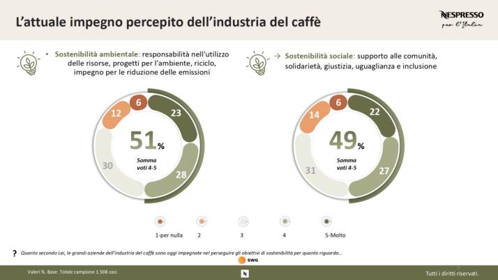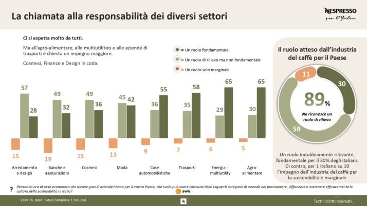 Come risulta dai dati, l’industria del caffè riveste un ruolo di rilievo per quasi il 60%. Secondo il 68% degli italiani, le scelte quotidiane individuali hanno un impatto significativo, anche se i giovani della Gen Z risultano meno ottimisti rispetto alla media. Inoltre, sette italiani su dieci sono pronti a modificare le proprie abitudini per ridurre il proprio impatto ambientale.