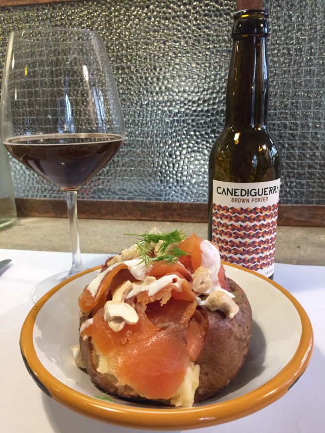 Non mancano le proposte interessanti anche se parliamo di beverage, una carta di livello creata da uno dei soci che ha messo in lista quello che gli piace bere, per una proposta di aperitivo con le mini baked, le patate più piccole dai 3 ai 14 euro, farcite e servite come finger food, per una degustazione completa, adatta ai più curiosi. Orario aperitivo dalle 19:00 alle 20:30 saranno accompagnate o da birra artigianale, con Canediguerra il birrificio di Alessandria inserito come birra esclusiva del locale. Sulla parte vini da segnare alcune chicce in carta, dai vini di Marco De Bartoli, passando alle bollicine di Faccoli e Abbona, con un’impostazione che strizza l’occhio ai naturali. E per il futuro prepariamoci anche ai trend in voga della mixology. Sarà stato un caso ma quando abbiamo visitato il locale era presente anche il giovane Bava, esponente della famiglia che produce bollicine di Alta Langa e Vermouth con il marchio Cocchi. Ci ha promesso una verticale di Vermouth in abbinamento alle patate del locale, bisogna solo aspettare, una buona scusa per tornarci.