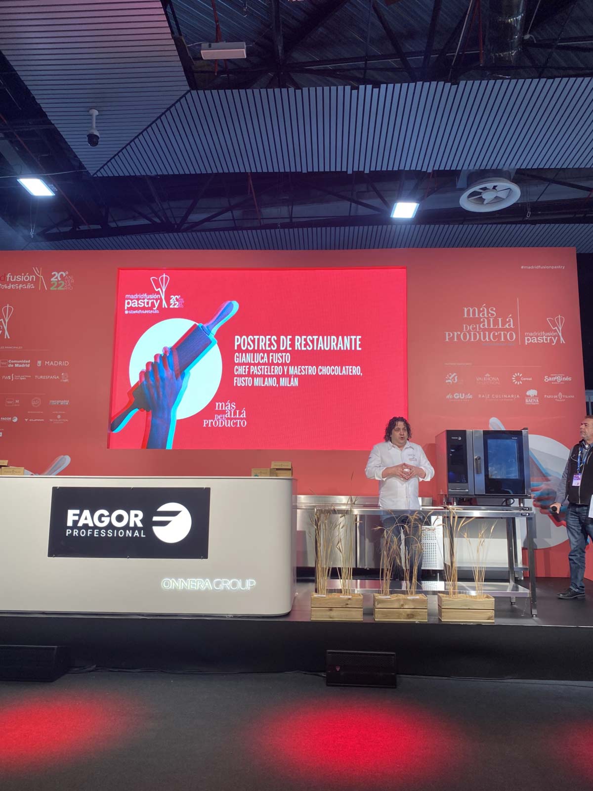 A Madrid Gianluca Fusto ha lanciato alcuni concetti, partendo dalla parola “dessert” che viene dal francese “desservir” ovvero “sparecchiare”, ricordando di attingere ad un universo diverso di quello del dolce, quello della cucina, delle tradizioni, della condivisione a tavola. Le emozioni della pasticceria non devono arrivare sempre e soltanto quando il palato è già stanco, a fine pasto, ma invece devono dare piccole emozioni, come una trama ricca e stimolante, accostandosi all’intero pasto. La visione e la creatività si legano al “saper vedere” e alla “visione tridimensionale”, quindi se leggiamo il mondo della pasticceria attraverso emozioni/sensazioni. Usando olfatto, aroma, sapore, sensazioni tattili termiche e cinestetiche e tutto questo succede quando portiamo la pietanza al palato. L’elemento che permette di individuare e riconoscere l’emozione, è un punto di fusione: la texture, con il profilo aromatico, temperatura, forma, dimensione, rispetto del tempo e tecnica.