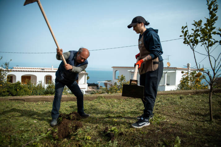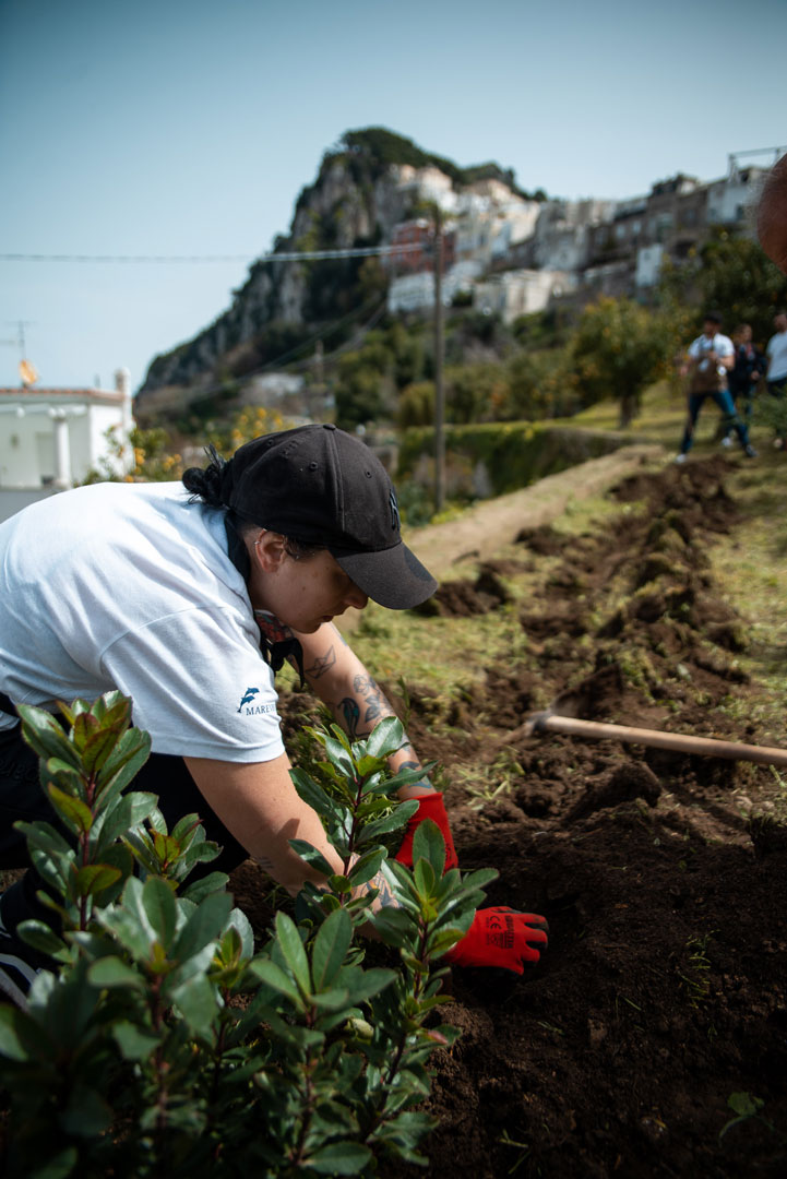 Marco Spinelli, videomaker, subacqueo e documentarista impegnato in battaglie di responsabilità sociale, Nicola Lamberti divulgatore ambientale, Sara Caulfield viaggiatrice seriale e travel designer e Federica di Nardo fotografa e travel blogger: insieme hanno dissodato terreno, rizollato, scavato, piantato e irrigato, costruendo anche un erbario in pietra locale per la coltivazione di botaniche ed essenze rare.
