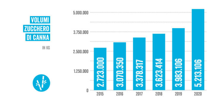 Una dolce sorpresa: lo zucchero. In linea con l’aumento generale a livello nazionale che si è registrato nel 2020, il consumo degli zuccheri di canna Fairtrade in Italia è cresciuto del 30% nel 2020 rispetto all’anno precedente ed ha raggiunto le 5.213 tonnellate, confermando la crescita costante che ha caratterizzato il quinquennio precedente (+70%).