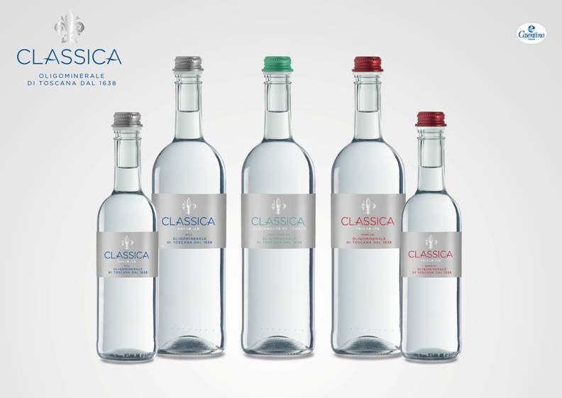 Pulizia dell’etichetta ed esclusiva semplicità delle forme della bottiglia bordolese a evidenziare la purezza di un’acqua minerale della Toscana dalle origini immerse nella storia stessa della regione. L’entusiasmo e i consensi dei clienti Horeca, evidenziati da un successo di vendite superiore  alle più rosee aspettative, ha convinto l’azienda a investire per dare ai propri clienti un prodotto esclusivo e senza eguali, assegnando all’acqua minerale dell’alta ristorazione una nuova fonte dedicata. Nasce così CLASSICA, acqua oligominerale di Toscana.
