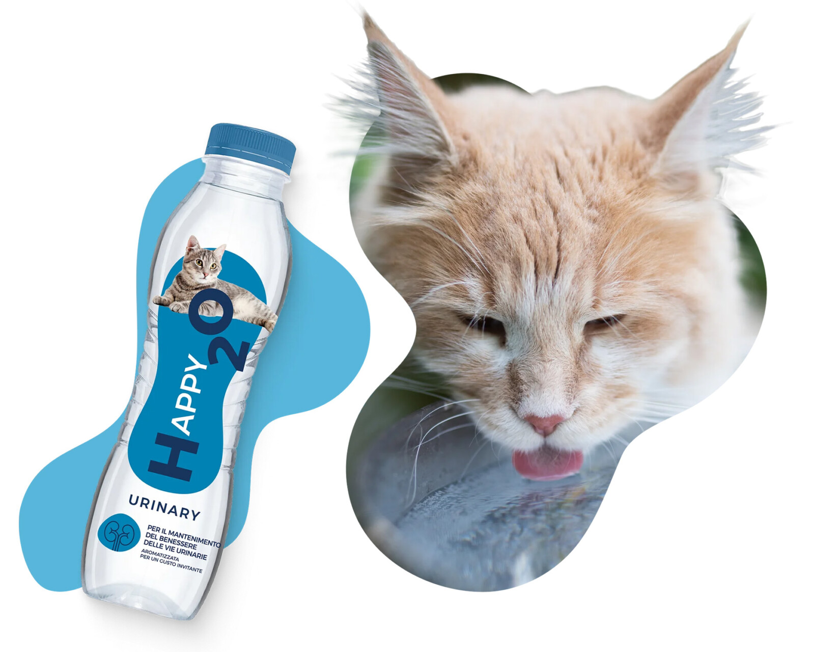 - Happy₂O Urinary, dedicata ai gatti, studiata per favorire il benessere delle vie urinarie.