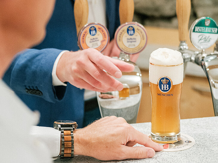 Una volta scelto correttamente il bicchiere e spillata la birra con una schiuma imponente, è il momento di appoggiare la birra  sul vassoio e di portarla a tavola. La corretta comunicazione del marchio dovrebbe essere al centro anche di questo passo del servizio: il vassoio e il sottobicchiere devono sempre corrispondere alla marca di birra servita e il bicchiere deve essere posizionato con il logo rivolto verso il cliente. Per motivi igienici, è importante non toccare mai il bicchiere sul bordo o in generale nella metà superiore. Afferra il bicchiere per lo stelo, il manico o semplicemente per l’estremità inferiore e posalo delicatamente sul tavolo ed è fatta! Questo è il modo perfetto per servire la birra dalla A alla Z!