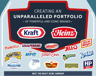 Originariamente il gruppo Kraft Food operava a livello internazionale. Nel 2012 il gruppo ha scorporato il business degli snack dolci e salati e bevande a livello mondiale fuori degli USA, conferendo le attività ad una nuova società denominata Mondelez, mentre Kraft Food ha proseguito con questo nome solo sul mercato Nord Americano. Ed è proprio quest’ultima che andrà a fondersi con la Heinz.
