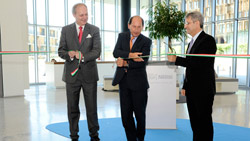Un Campus di oltre 22.000 mq ad Assago (Milano), progettato per supportare innovativi modelli di smart working e promuovere efficienza, sostenibilità, e benessere delle persone. Il CEO di Nestlé S.A. Paul Bulcke ha inaugurato il Campus Nestlé, la nuova sede del Gruppo in Italia, a Milanofiori Nord (Assago, Milano). L’Italia diventa quindi uno dei primi mercati al mondo a riunire sotto un unico tetto tutti gli uffici direzionali: oltre a Nestlé Italiana sono presenti, infatti, anche Sanpellegrino, Nespresso, Purina, Nestlé Nutrition e Nestlé Health Science, Nestlé Professional e CPW, per un totale di circa 1.300 persone. Presenti al taglio del nastro anche Laurent Freixe, Executive Vice-President e Zone Director in Europe di Nestlé S.A., e il Capo Mercato del Gruppo Nestlé in Italia, Leo Wencel. (Nella foto da sinistra a destra: Leo Wencel, Capo Mercato Gruppo Nestlé in Italia. Paul Bulcke, CEO di Nestlé S.A. Laurent Freixe, Executive Vice-President di Nestlé e Zone Director in Europe).
