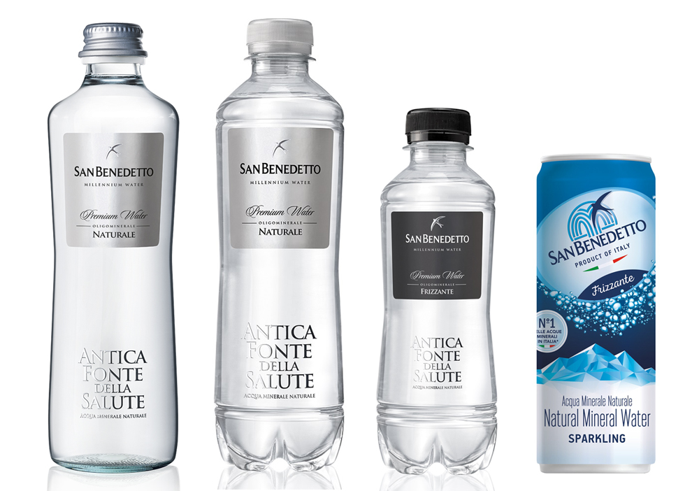 Prima tra tutte, Antica Fonte della Salute – Millennium Water, la più prestigiosa creazione di San Benedetto che si presenta nei gusti Naturale e Frizzante con un nuovo elegante formato in vetro da 33 cl che va ad affiancare quello da 65 cl dalle forme sinuose che ne esaltano la raffinatezza. Altra novità importantissima sarà la nuova shape in pet da 40 e 25 cl nei gusti Naturale e Frizzante. L’immagine della linea sarà dunque uniformata riprendendo lo stile elegante e svasato delle bottiglie in vetro e fornendo maggiore praticità e comodità di presa. Non solo vetro e PET: è in lavorazione un nuovo formato in lattina da 25 cl, caratterizzato da un design raffinato e orientato alla sostenibilità.