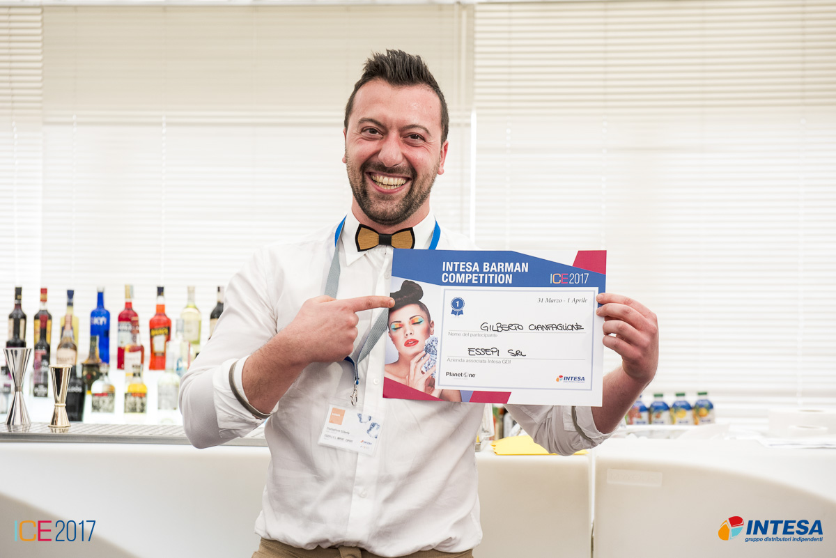 Gilberto Cianfaglione, vincitore della 1° edizione dell’Intesa Barman Competition, riservata ai punti vendita serviti da distributori Intesa.