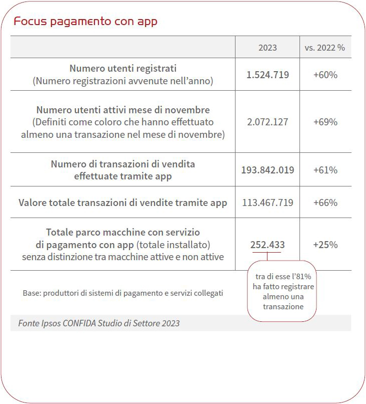 Peraltro, le tecnologie tutte italiane del vending stanno vivendo una vera e propria “rivoluzione digitale”. Oggi con la connettività si può gestire una vending machine da remoto e connetterla al software gestionale dell’azienda, verificando in tempo reale, direttamente via web, lo stato del distributore, modificandone impostazioni e parametri e analizzandone i big data. Nelle ultime generazioni di distributori automatici sono installati schermi touch al posto delle tradizionali pulsantiere, consentendo una maggiore interazione col consumatore e, nelle macchine del caldo, anche di personalizzare le ricette dei prodotti.