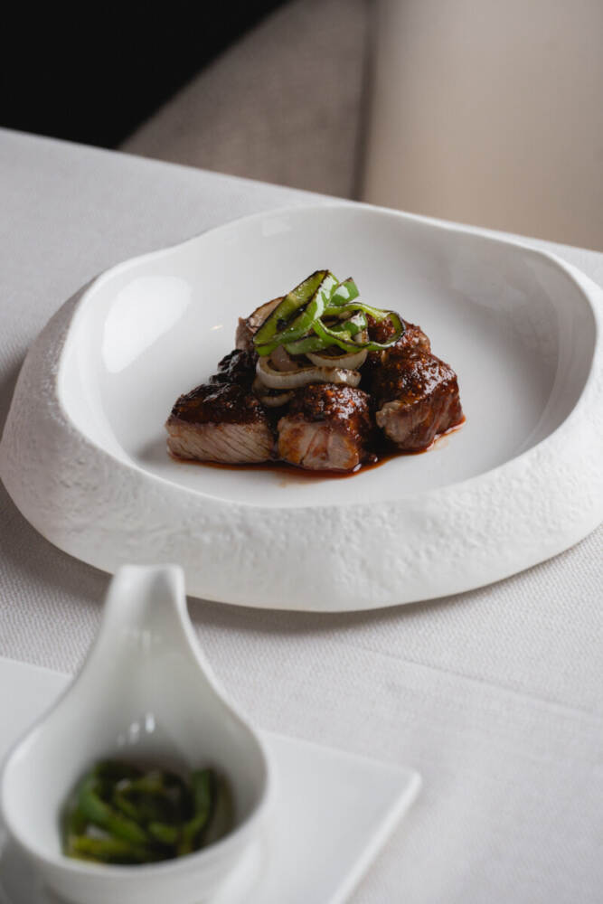 Lu, Chuan, Yue, Min, Su, Zhe, Xiang e Hui, questi gli otto stili principali della Cina, un paese immenso con una varietà di cucine regionali, ciascuno caratterizzato da ingredienti locali e metodi di cottura unici. Al Kanton Restaurant, la filosofia culinaria rispetta questa diversità, curando ogni dettaglio, dalle materie prime alla presentazione dei piatti. Un’esperienza autentica che alterna sapori dolci e speziati, contrasti di consistenze e temperature. Le antiche ricette cinesi vengono rielaborate con un approccio moderno, arricchendo ogni piatto con l’esperienza di Zhu, cresciuto tra Italia e Cina. Grazie a un costante approvvigionamento di ingredienti originali cinesi, come bambù d’acqua, uovo centenario, meduse e funghi abalone, il menu offre un vero assaggio dell’Oriente. Allo stesso tempo, alcune materie prime vengono selezionate localmente, come le carni provenienti da un agriturismo vicino, per garantire la massima qualità.