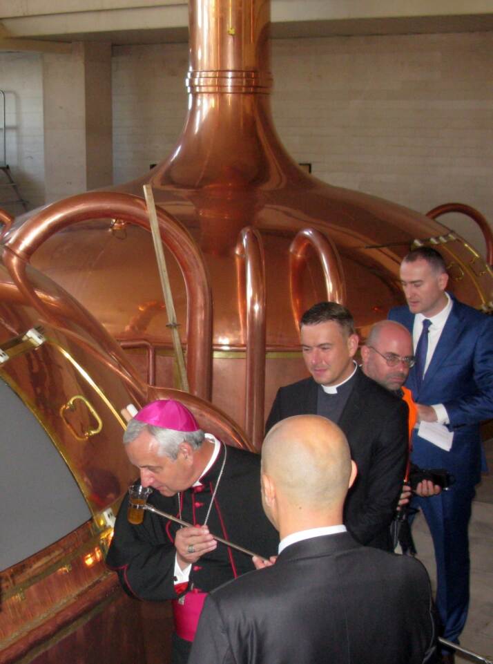 Una lager chiara, ottenuta da una cotta speciale, consacrata dal vescovo della città e imbottigliata a mano in soli 122 pezzi. È l’omaggio che un emozionatissimo Petr Dvořák, direttore generale della birreria Budweiser Budvar, e il mastro birraio Adam Brož hanno consegnato a Papa Francesco durante un’udienza in Vaticano, momento focale del pellegrinaggio in Italia compiuto dalla direzione del birrificio insieme al vescovo di Budweis.