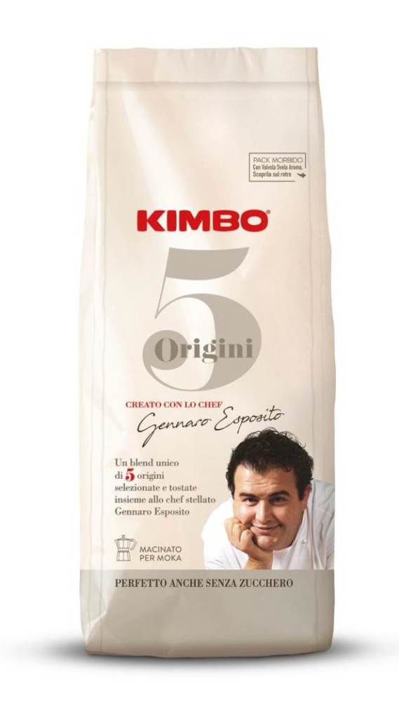 Dalla collaborazione con lo chef stellato Gennaro Esposito nasce il nuovo Kimbo 5 Origini, un blend delle migliori qualità di caffè arabica, attentamente selezionate con la partecipazione di Gennaro Esposito e sapientemente tostate dai mastri torrefattori di Kimbo.