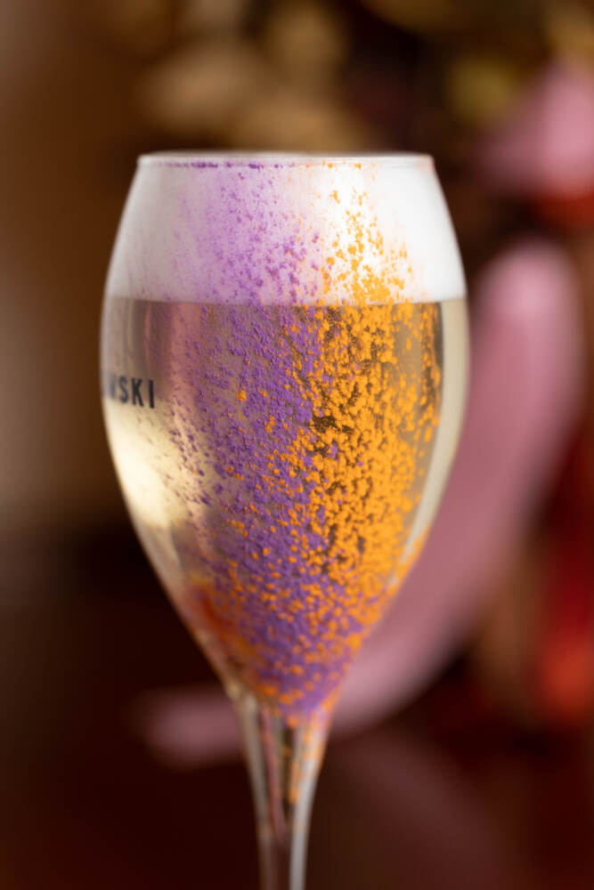 Chiara rivisitazione del Bellini, questo drink estivo e dalla bassa gradazione alcolica viene realizzato con vino Gewurztraminer, velluto di pesca e bolle aromatiche.